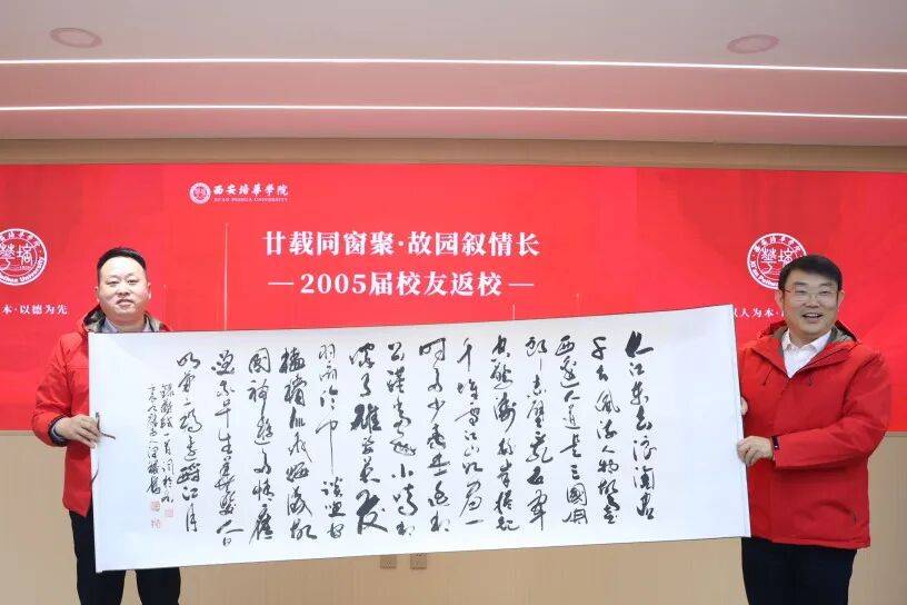 座谈尾声,校友樊增位向母校赠送了精心准备的书法作品,以笔墨寄深情,表达了对母校的美好祝愿。