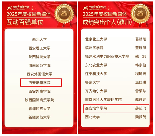 2025年,西安培华学院党委宣传部在活动组织、内容聚合、学生队伍培养等方面持续创新,推动网络育人工作不断贴近时代、增强实效。此次多项荣誉的获得,既是对学校长期以来高度重视网络思政阵地建设的充分肯定,也是全校师生协同努力、积极作为的集中体现。