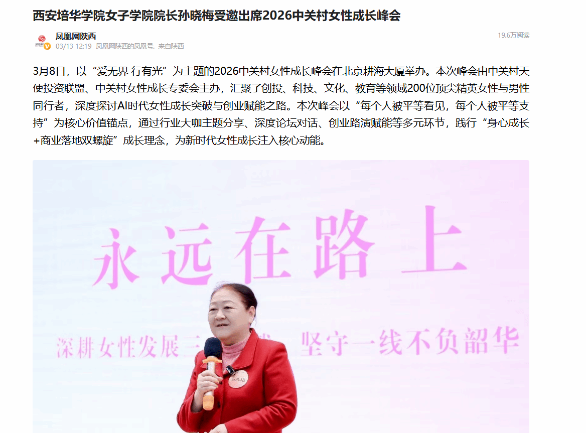 作为国内女性教育的重要阵地,西安培华学院女子学院将始终以推动女性全面发展为己任,在女性人才培养、女性学研究、妇女儿童权益保障等方面持续发力,加强与国内外女性发展领域的交流合作,将峰会中的先进理念与优质资源融入人才培养与科研实践,为更多女性的成长与发展赋能,助力新时代女性在各自的赛道上绽放独特光芒。