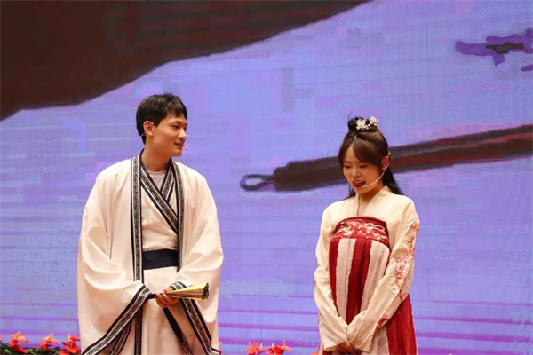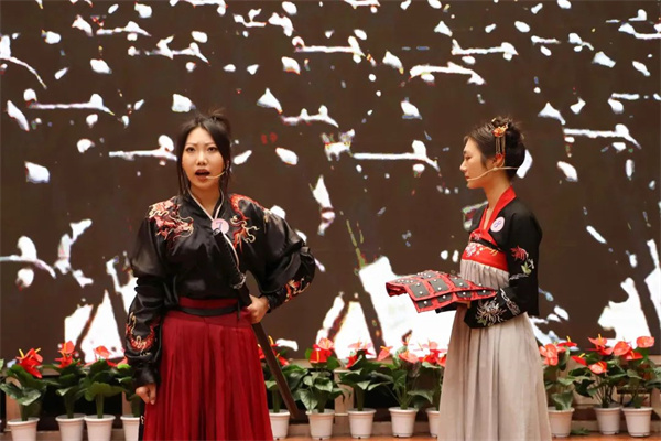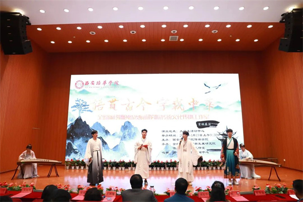 4月19日,西安培华学院“语贯古今、字载中华”全媒体传播创新发展研究院传统文化传播工作室首映展演在维之图书馆报告厅举行。剧目总监制、传媒学院院长杜耀峰及传媒学院师生出席了本次汇演。本次展演以诗经、史记等古代文学经典作品为主题,传承中华传统文化。