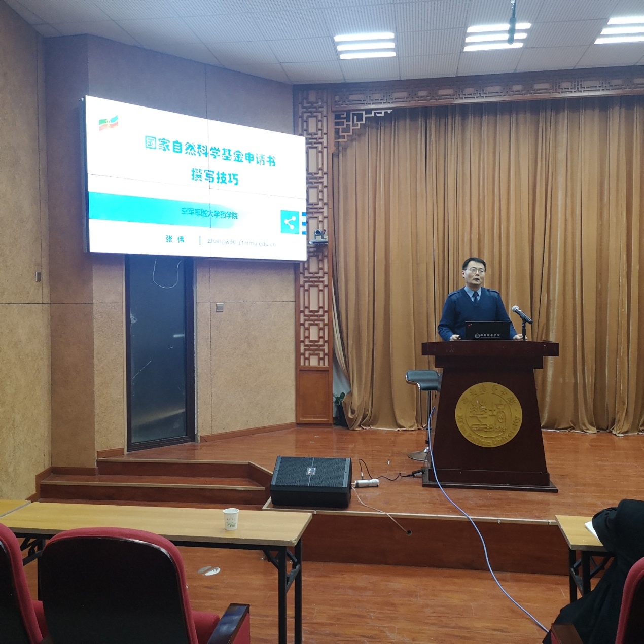 会议首先由科研管理中心朱广良副主任介绍申报培训嘉宾简历,本场培训由空军军医大学药学院院长、博士研究生导师张伟教授就国家自然科学基金申报具体内容向与会领导和老师们作详细解读,并从我校具体实际出发,对申报这一国家级科研项目的机遇和挑战分别进行了剖析。