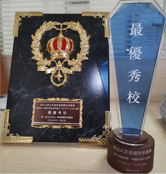11月2日,第25届中国大学生日语才能演示大赛在西安外国语大学长安校区举行。学校人文与国际教育学院外语系日语专业2022级王静怡同学获得一等奖,并获得受邀访问日本的机会,小泽一博老师获优秀指导奖。学校获最优秀院校奖。