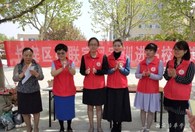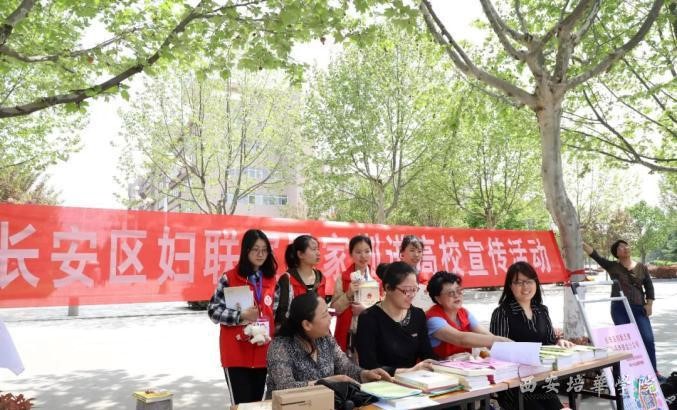 4月3日中午,长安区妇联、西安培华学院人文学院、女子学院以及校三秦巾帼志愿服务团联合举办的“长安区妇联法制、家风家训进高校”宣传活动在我校图书馆门前举行。