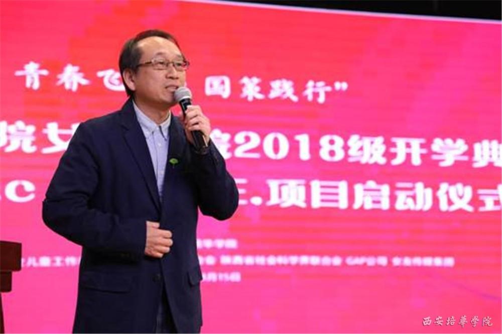 理事长姜波致欢迎辞,他对省妇联、省社科联领导莅临我校指导工作表示热烈的欢迎。对Gap lnc.P.A.C.E.项目在西安培华学院落地表示衷心的祝贺!他讲到,培华学院一直注重女性教育,积极传承和弘扬女性教育精神,致力于打造女性教育品牌。他表示,新时代培养女性的综合素质尤为重要,希望女子学院的同学们在未来的生活中、工作中拥有较强的职业竞争力、创新力,以巾帼不让须眉的状态紧跟时代的步伐,创造属于自己灿烂的美好人生。