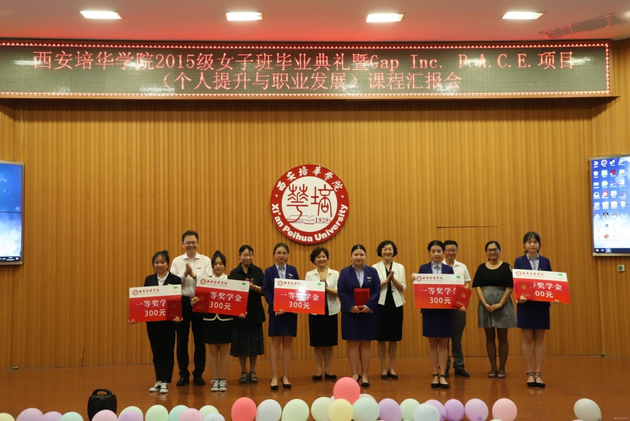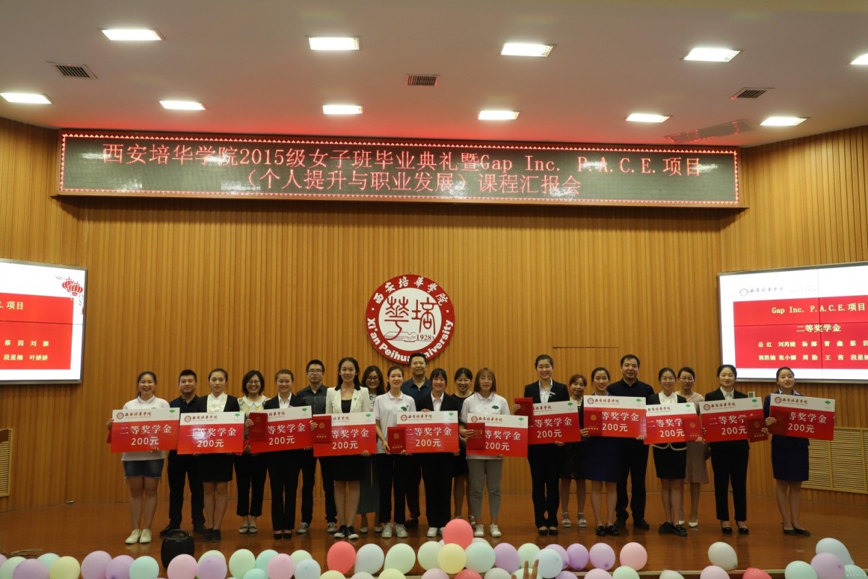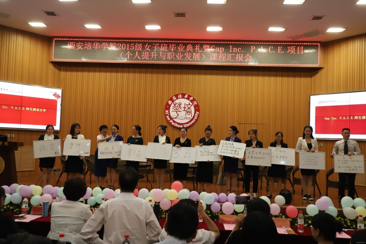 西安培华学院的战略合作伙伴陕西省妇联、省政府妇女儿童工作委员会办公室的代表,厅级巡视员冯 屹,陕西妇女儿童发展基金会秘书长任君恒,国际计划(美国)陕西代表处对外联络专员田博,中国致公党中央教育委员会副主任、陕西省政协常委、陕西省中华职业教育社副主任、西安培华学院理事长姜波博士,西安培华学院学术委员会主席 、学位评定委员会主席、副校长刘越莲,女子学院院长 、德艺双馨的著名作家叶广芩2015级女子学院女子班毕业生、2017、2018级参加Gap Inc.P.A.C.E课程的学生,教师团队等参加了活动。