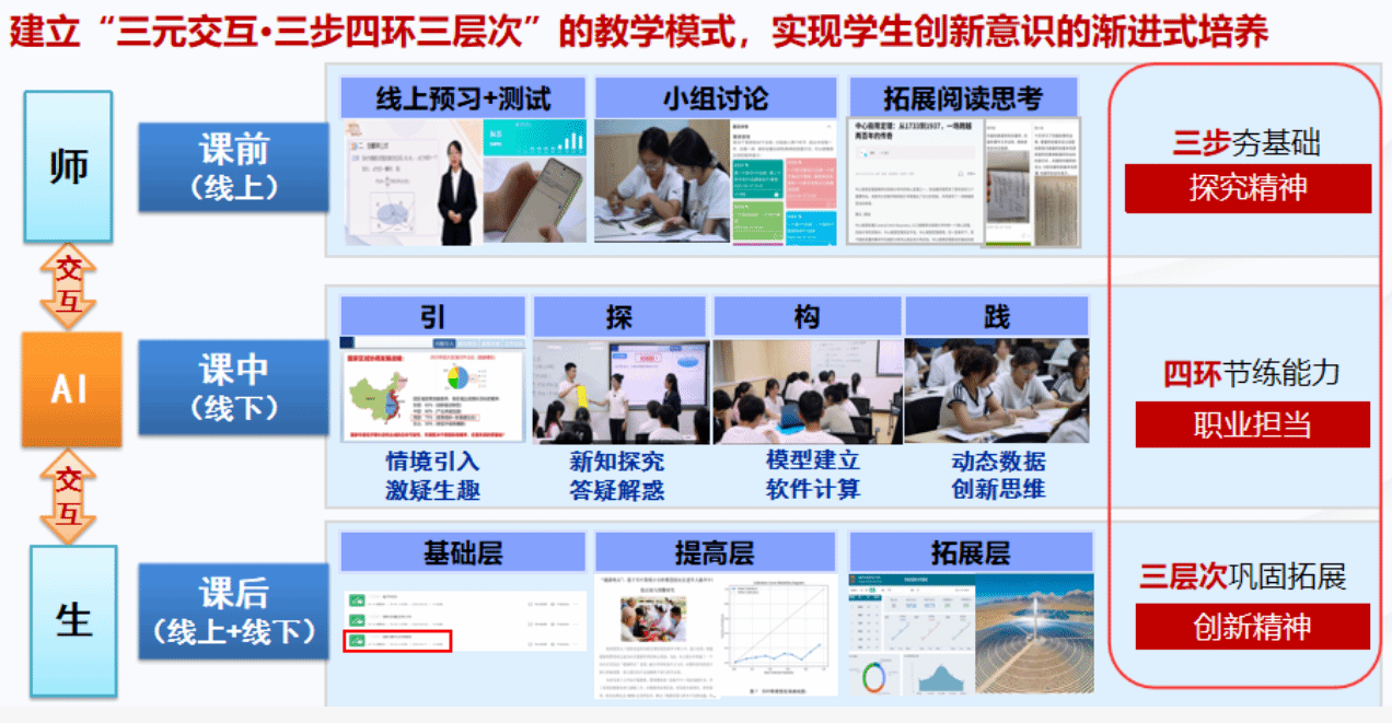 在十五年的教学实践中,她主导的“理实递进式”教学资源体系、“一引擎四联动”数智化教学手段和“三元交互·三步四环三层次”教学模式,构建起数学教育的立体化生态。