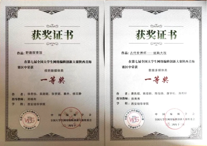 荣获中华职业教育创新创业大赛全国一等奖、第十届“挑战杯“陕西省大学生创业计划竞赛金奖、第十二届“挑战杯"中国大学生创业计划竞赛铜奖,第十届中国国际“互联网+”大学生创新创业大赛陕西赛区银奖及全国铜奖、陕西省第一届青年志愿服务项目大赛金奖、第12届未来设计师·全国高校数字艺术设计大赛国家一等奖......