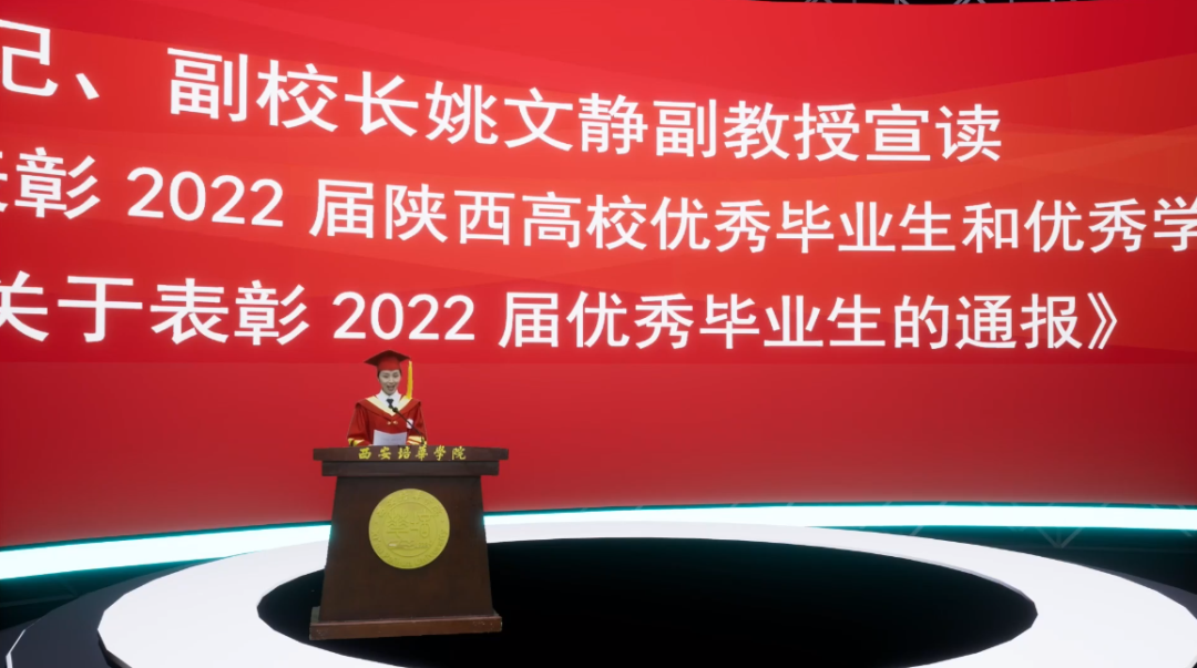 党委副书记、副校长姚文静副教授宣读《西安培华学院关于表彰2022届优秀毕业生的通报》。
