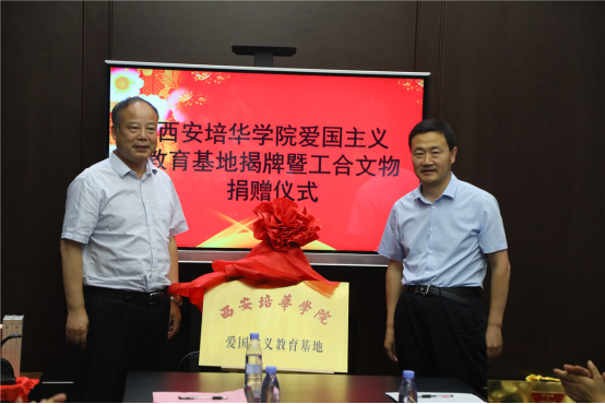 金台区委书记、蟠龙新区党工委书记宁怀彬与罗新远书记为西安培华学院爱国主义教育基地揭牌