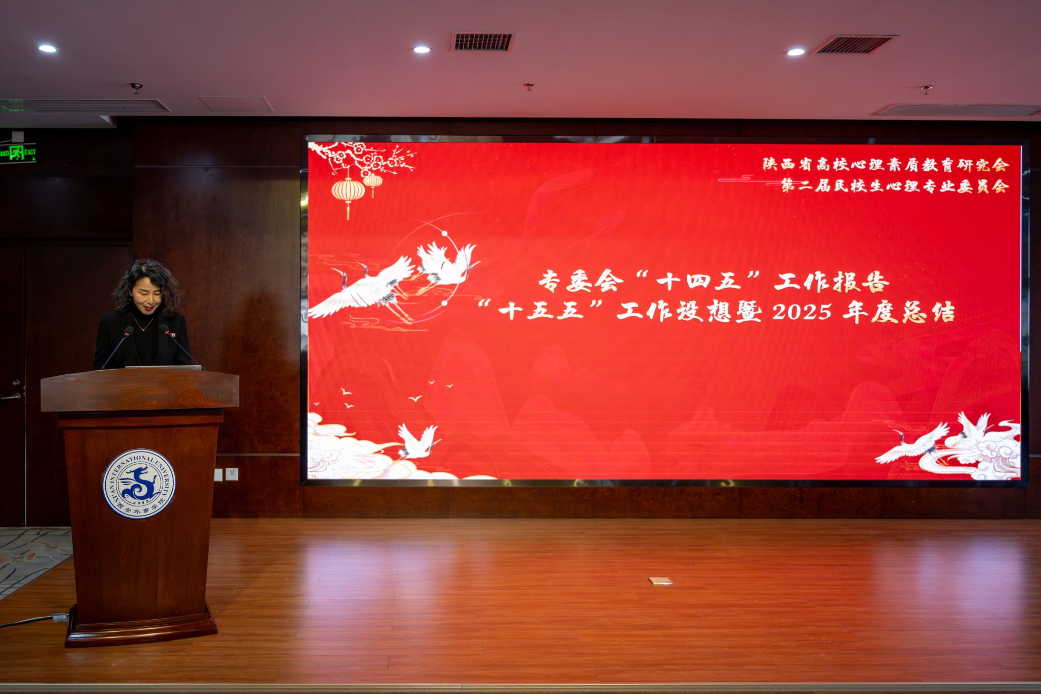 姚文静代表民校生心理专业委员会,作“十四五”规划工作回顾、“十五五”工作设想暨2025年度工作总结报告。她指出,“十四五”时期是我省民办高校心理育人事业迈向高质量发展的关键攻坚期,专委会立足组织引领与实践创新双主线,取得了一系列标志性成果,各成员单位立足办学特色深耕实践探索,形成了多元协同、特色鲜明的心理育人工作体系。她围绕“十五五”发展蓝图,她提出六大核心攻坚方向,即健全协同联动机制、强化专业化队伍建设、深化特色品牌创建、推进心理育人数字化转型、加强科研创新赋能、完善全链条危机干预体系,锚定2030年发展目标,全力构建“协同高效、特色鲜明、精准赋能、全面覆盖”的陕西民校生心理育人新格局。