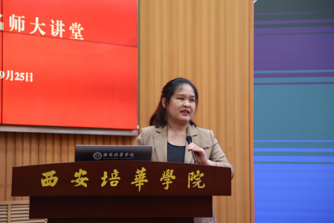 毛莉君教授首先以“坚守教育初心 矢志为党育人”这一主题开场。她围绕教育家精神内涵、新时代师德师风建设、违反师德师风典型案例、争做时代“大先生”四个方面,为我们深入阐释了教育家精神中的理想信念、道德情操、育人智慧、躬耕态度、仁爱之心、弘道追求等内涵,并以陕西省第二批高校“双带头人”工作室负责人、第三批全国党建双创“样板支部”负责人的身份,引导广大青年教师努力成为信念坚定、师德高尚、业务精良的“大先生”,争做教育家精神的弘扬者和践行者,成长为党和人民可以信任和依靠的“大国良师”。
