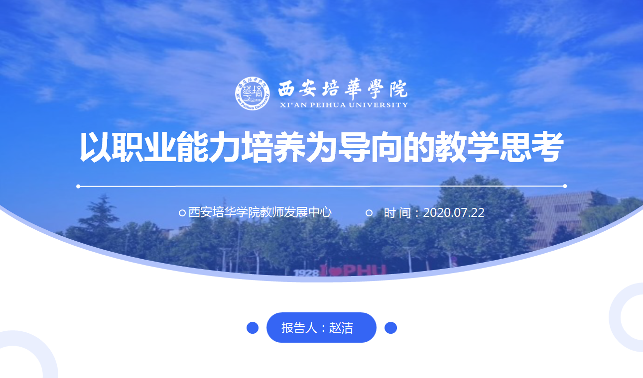 7月22日下午,教师发展中心特邀我校省级师德标兵、教学名师、人文与国际教育学院法学系主任赵洁副教授为我校近200名教师作了题为《以职业能力培养为导向的教学模式思考》的线上讲座。本次讲座的内容主要是围绕应用型人才与职业能力、基于职业导向的人才培养优势、以职业能力培养为导向的教学模式思考等三个方面进行讲述和经验分享。