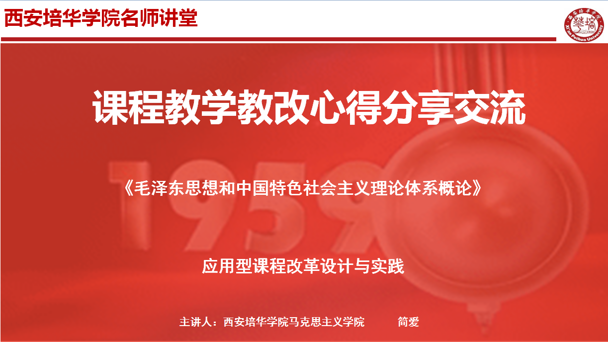 6月17日下午,教师发展中心特邀我校教学名师、思政部《中国近现代史纲要》教研室主任简爱副教授为我校百余名教师作了题为《课程教学教改心得分享交流——< 毛泽东思想和中国特色社会主义理论体系概论>应用型课程改革设计与实践》的线上讲座。本次讲座的内容主要是围绕教改目的、实施、经验分享等几个方面进行阐述。