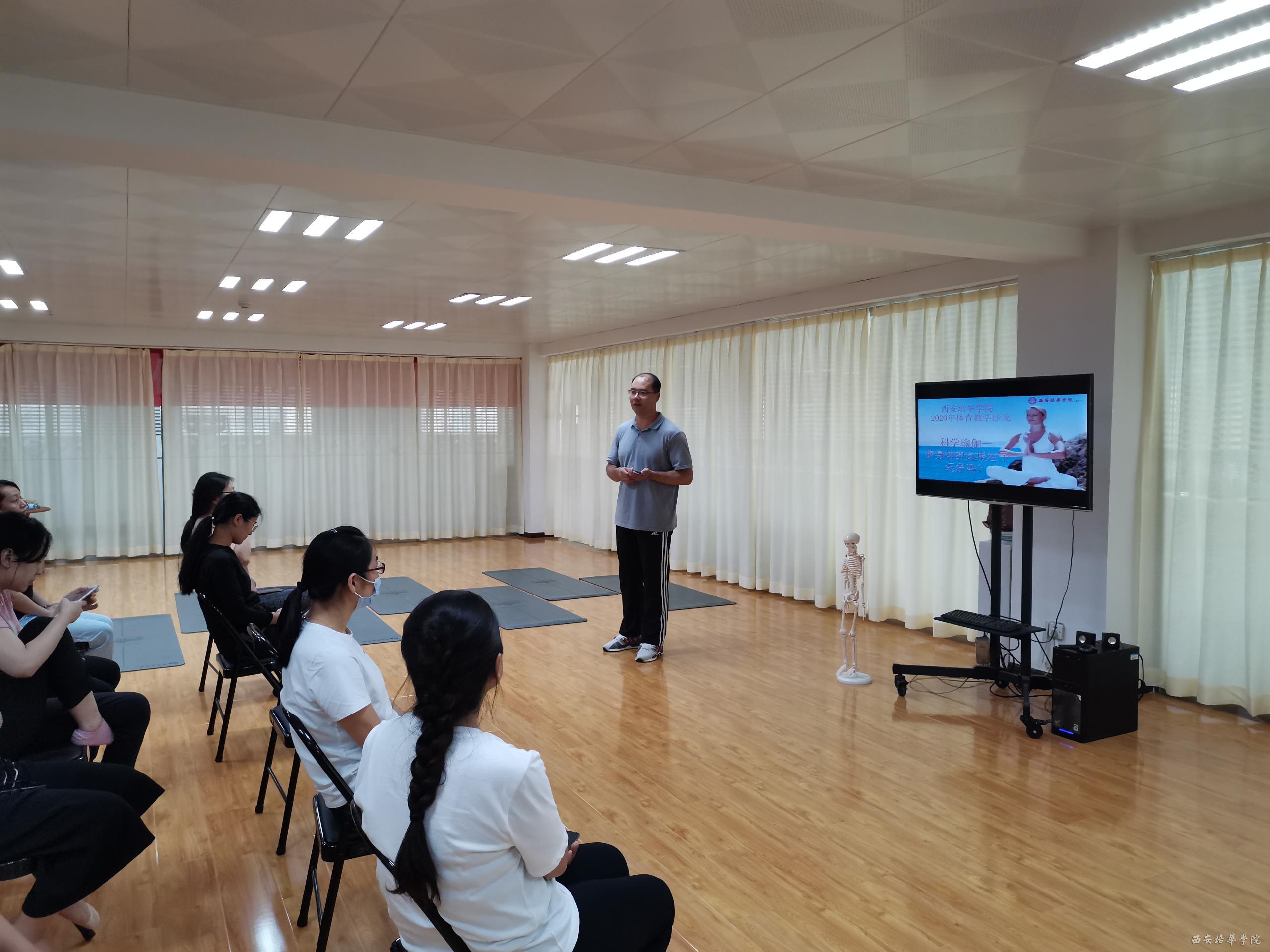 6月12日下午,由教师发展中心主办、体育中心承办的第十期教学沙龙在明德楼三楼东侧科学瑜伽室进行,这也是本年度最后一期教学沙龙活动。来自各院系、各部门的近30名教职工纷纷积极报名参加“科学瑜伽”。此次沙龙的主持人是体育中心副主任马德厚副教授,之后则由体育中心瑜伽俱乐部主任孙焕梅老师为我们解说和展示了“科学瑜伽”的理念和宗旨。