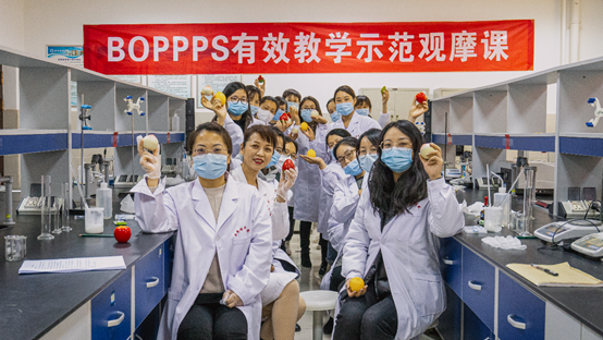 观摩课上,葛维娟老师向大家介绍了“BOPPPS有效教学模式”及其包含的六大教学结构,并基于BOPPPS教学模式,开展护手霜制作教学内容,向大家清晰明了地展示了BOPPPS教学模式所包含的六大结构在课堂上的具体应用。