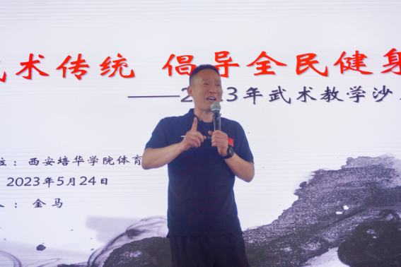 5月24日下午,体育学院承办了以“继承武术传统,倡导全民健身”为主题的教学沙龙,本次沙龙在西安培华学院体育馆举行,由体育学院综合类教研室主任金马(副教授)主讲,武术俱乐部具体负责执行,参与教师共计三十余人。