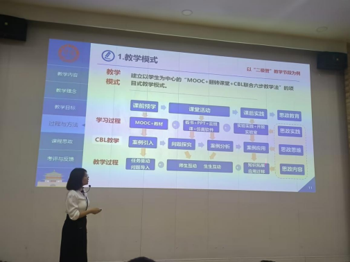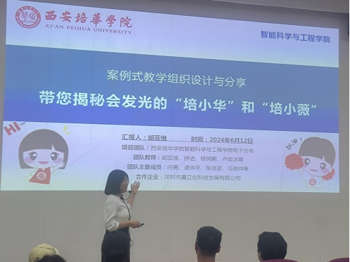 智能科学与工程学院的胡亚维副教授展示了“案例式教学组织设计与分享”示范课,课程带大家揭秘了会发光的“培小华”和“培小薇”。通过会发光的硬件电路展开,说明了器件特性、电路分析方法、电路功能的实现、电路参数的选取以及作品的实现过程。整个教学设计全面展示了以学生为中心的教学理念,利用案例引入、案例分析、案例应用和案例拓展迁移,采用“MOOC+翻转课堂+CBL联合六部教学法”教学模式,做到了用心设计、用情授课、用爱育人。