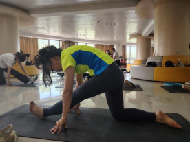 两位专业教练带领大家进行了一场别开生面的普拉提训练,通过一系列精准的动作,帮助教师们放松紧张的肌肉,改善身体姿态。