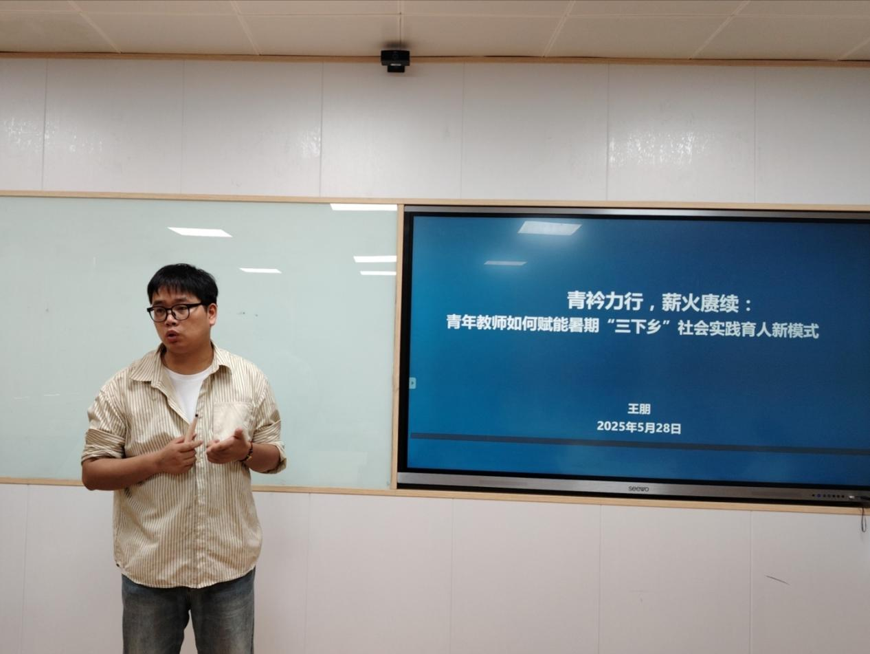 紧接着,马克思主义学院王朋老师结合自身丰富的“三下乡”指导经验,分享了开展高质量活动的策略。他着重强调活动设计要贴合学生专业与当地实际需求,注重实践过程中的思想引领与能力培养,为老师们提供了宝贵的实践指导。