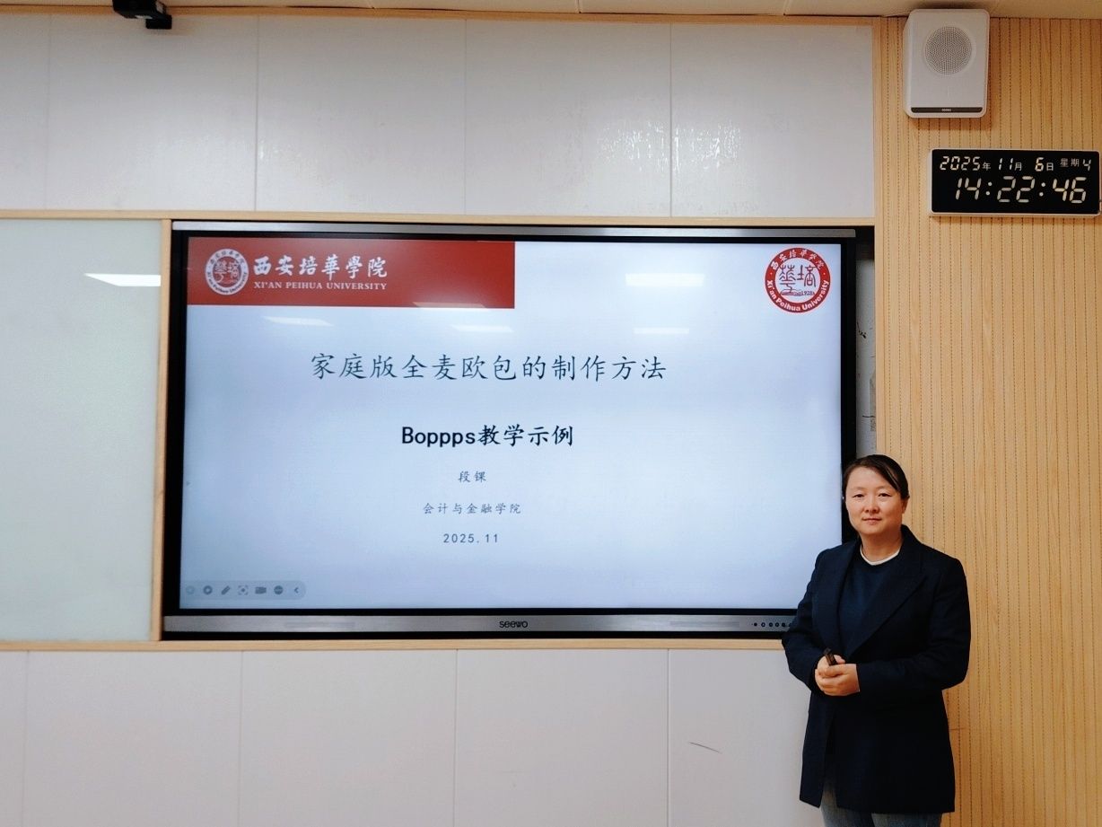 段锞老师则以《家庭版全麦欧包的制作方法》为例,进行了完整的BOPPPS教学示范。从“是什么阻碍你做面包”的导入提问,到设定“学习制作方法、掌握关键点、培养健康意识”的三维目标,再到通过排序题和简答题开展前测与后测,最后以朗朗上口的口诀作总结,全程融入互动讨论与实操演示,将BOPPPS模型具象化地呈现在老师们面前。