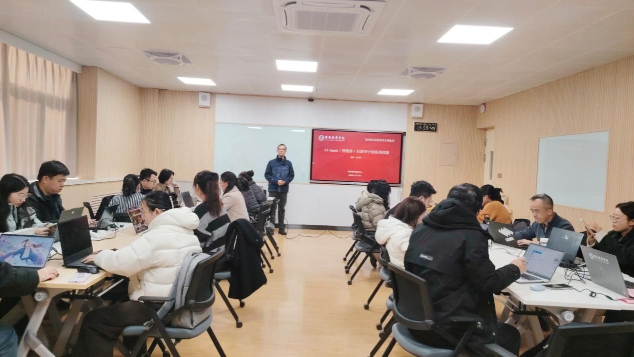 为赋能教师掌握前沿智能工具,12月17日下午,由教师教学发展中心组织的第九期未来教育技术训练营在博远楼2209智慧教室成功举办。本期训练营聚焦“AI Agent(智能体)在教学中的实用技能”,特邀智能科学与工程学院张健、李永成两位老师担任教练员,本次训练营吸引了来自全校各院的三十余位教师参与,共同开启了一场关于未来教育智能化的探索与实践之旅。