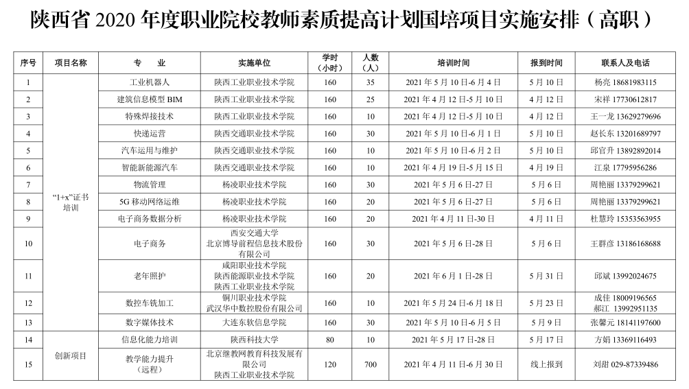 1. 陕西省2020年度职业院校教师素质提高计划国培项目实施安排