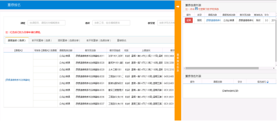 2.选择成功后右侧菜单点击显示重修选课情况,若允许退课则点击退课按钮亦可退课。
