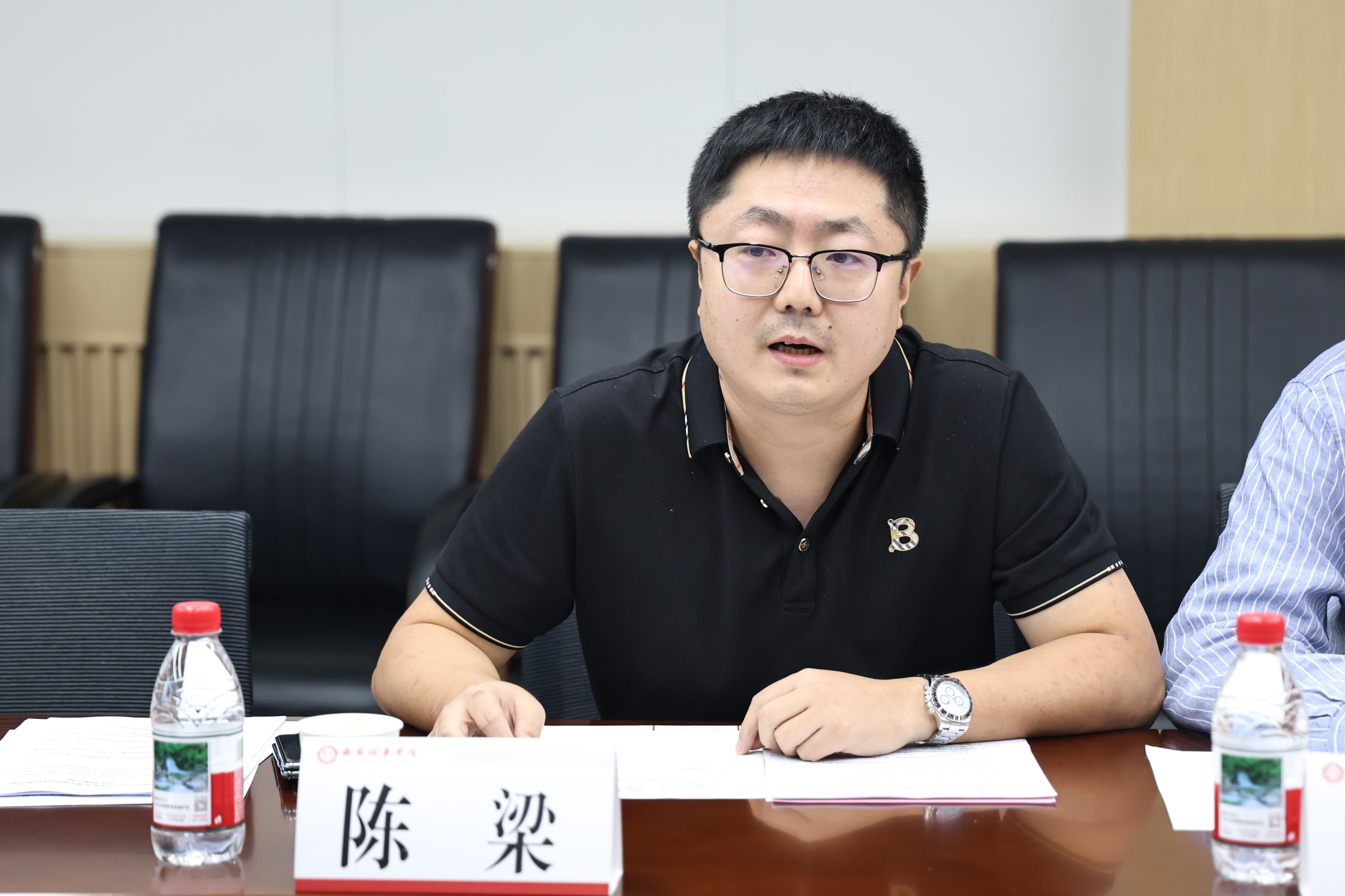 西安深澜创联科技有限公司行政部总监陈梁代表企业方介绍了与学校合作的背景和渊源,介绍了香港北极星国际产业发展集团、西安深澜创联科技有限公司的基本情况和主要业务活动,充分肯定了合作前景。