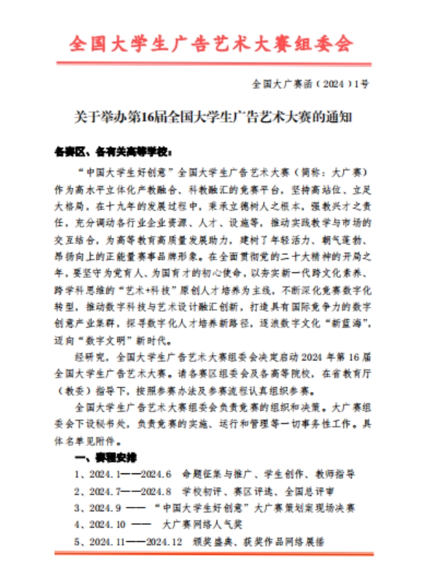 全国大学生广告艺术大赛(简称:大广赛)作为高水平立体化产教融合、科教融汇的竞赛平台,坚持高站位、立足大格局,在十九年的发展过程中,秉承立德树人之根本,强教兴才之责任,充分调动各行业企业资源、人才、设施等,推动实践教学与市场的交互结合,为高等教育高质量发展助力,建树了年轻活力、朝气蓬勃、昂扬向上的正能量赛事品牌形象。2024年第16届全国大学生广告艺术大赛西安培华学院赛点比赛报名即时启动,本赛事在全校范围内选拔优秀学生、选聘优秀指导教师,鼓励跨学科组成参赛学生团队和指导团队。西安培华学院赛点实施方案发布如下: