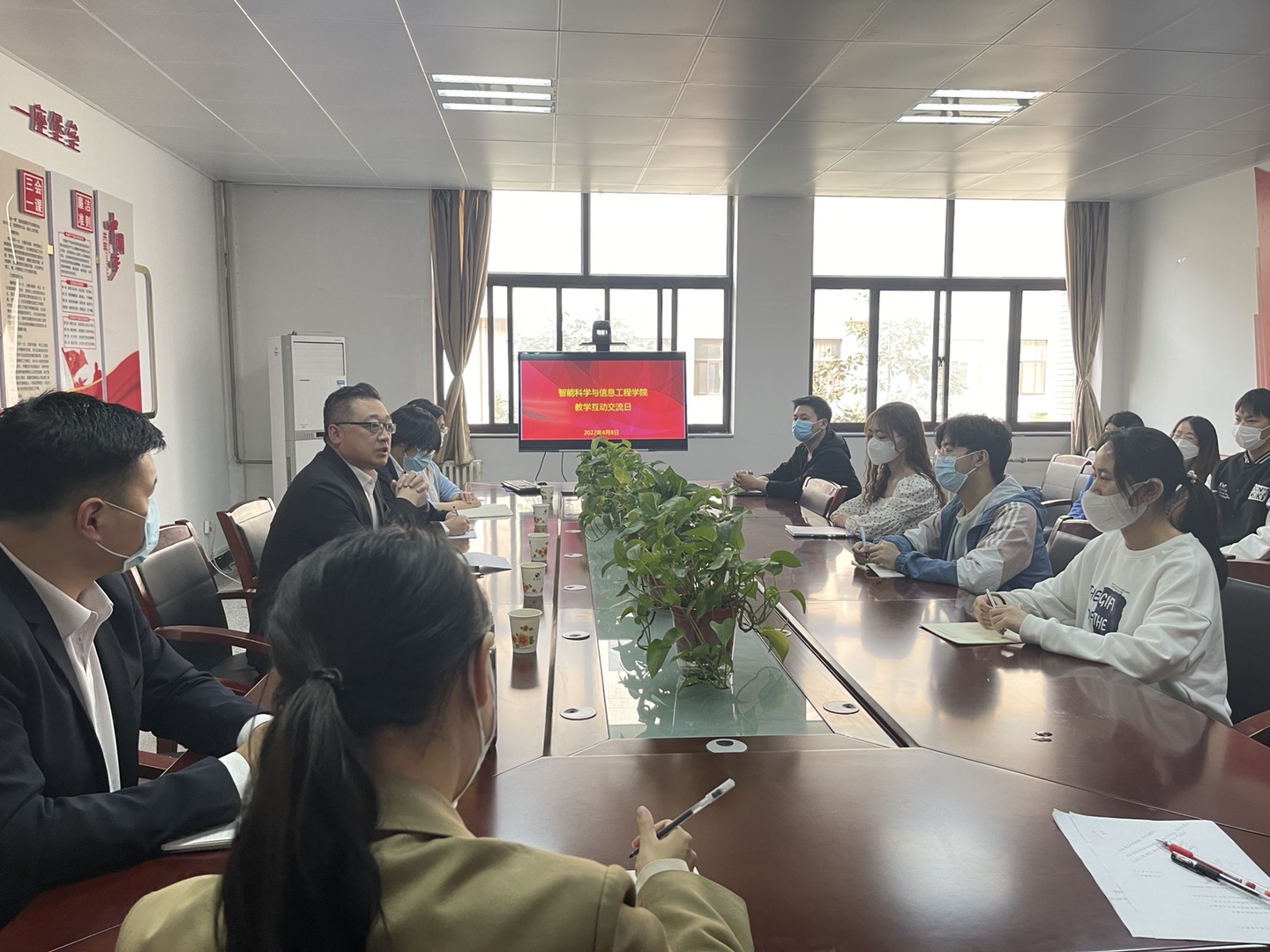 为进一步落实以“以学生为中心”的教育理念,加强与学生的沟通交流,促进师生共建和谐美丽校园,教务管理中心与智能科学与信息工程学院于4月8日下午在院会议室共同举办学生教学互动交流日活动。教务管理中心副主任张伟、行政干事贺宇欣、智信学院电子系系主任胡亚维、计算机系副主任唐明、教学干事及12位学生代表参加本次活动。