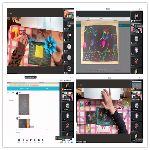 人文与国际教育学院张雅雯老师担任学前教育专业《玩教具制作》课程与《美工(二)》课程的教学任务。为了线上教学的有效进行,课前10分钟张老师让学生在轻直播上传前一周的作业,以教师点评,学生互评的形式检验学生掌握情况。课堂上,为了学生集中注意力,张老师始终保持直播形式进行教学,并启用双机位模式,采用“一步一讲解”、“一步一回课”、“在线实时答疑”等多种形式,相对弥补了实践课线下教学演示性的不足,学生们纷纷表示能够细致的学习到本节课相关的知识与技能,并乐于参与到课堂中。