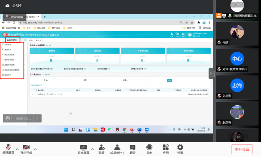 规范管理,增强信息化手段。为进一步推进论文管理的规范化和信息化,学校自2021届毕业生采用了知网毕设管理系统。论文(设计)指导老师和学生在线上完成课题申报、选题、任务书、开题、过程指导、答辩、成绩管理等整个毕业设计过程,并可以留存全部过程和结果数据,提供信息查询和导出服务等。同时,学校邀请了知网公司负责人对毕设系统的操作流程及方法进行了多次培训和演示,提高了教师对系统使用的熟练程度。