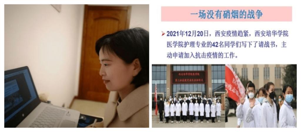 传媒学院播音与主持艺术专业赵伟、谢欣榕、鲁子瑞老师承担《新闻采访与写作》课程教学任务。课程组老师们利用网络平台进行混合式教学,也是特殊时期背景下的一次教学改革。在课程讲授过程中,老师们及时在课堂上引入最新抗疫案例,在教学过程中及时调节学生心理状态。另外,作为院级课程思政示范课,在授课过程中融入思政元素,并通过近期校内外新闻了解和理解我校教师们在封校期间“舍小家保大家”的奉献精神,通过讲述学校核酸检测的志愿保障队伍特别是医学院的学生志愿队伍每天七、八个小时站在寒风中为大家做核酸提供志愿服务的案例,鼓励同学们坚定信心,团结一心,共同努力,早日赢得抗疫战争的胜利。