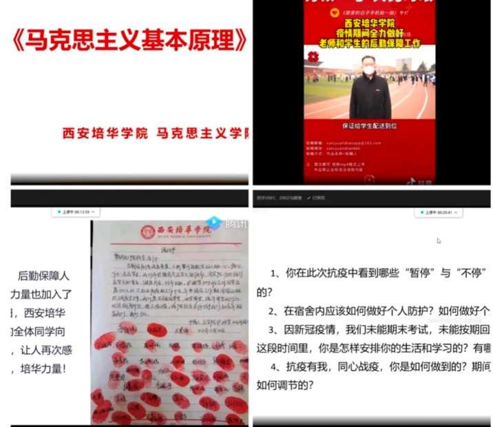 邢波老师《马克思主义基本原理》线上课堂,将“高校大学生应该如何应对疫情防控”为主题的大讨论融入教学内容之中,充分利用本校疫情防控中涌现出来的先进事迹、优秀典型、感人故事等思政育人元素,激发和引领大学生勇担重任、奉献社会。