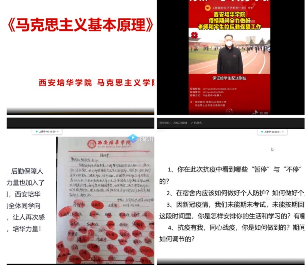 马克思主义学院邢波老师的《马克思主义基本原理》将“高校大学生应该如何应对疫情防控”为主题的大讨论融入教学内容之中,充分利用本校疫情防控中涌现出来的先进事迹、优秀典型、感人故事等思政育人元素,激发和引领大学生勇担重任、奉献社会。