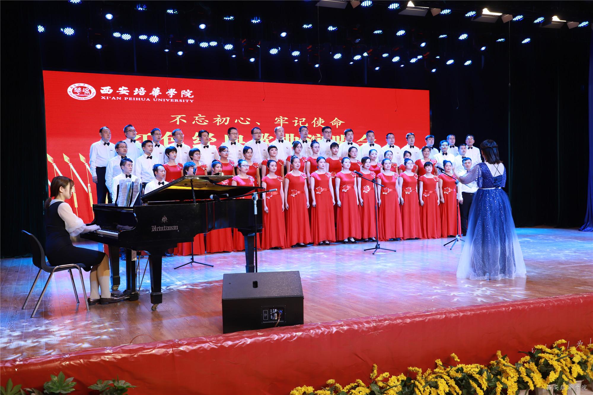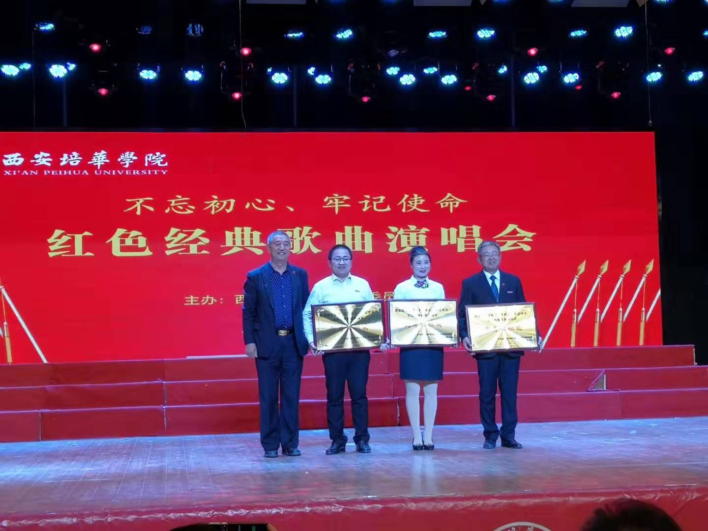 绚彩的灯光,嘹亮的歌声,帅男靓女,铸就了2019年10月30日晚西安培华学院“不忘初心,牢记使命”红色经典歌曲演唱会的成功。理事长的精彩致辞,各分会的精彩表演,评委的点评,观众的热情,都已成为永恒的记忆。这份沉甸甸的记忆必将激励着培华人不忘初心、奋力前行,践行《培华之歌》的誓言,做民办教育的典范,为建设高水平一流民办大学而努力。