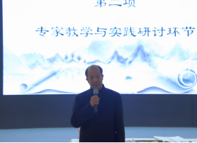 在研讨会专家教学与实践研讨环节中,陕西书画艺术研究院院长、国家一级美术师陈宏首先进行发言。他指出学校是文化的集散地,陈院长以“传统文化下的中国文字与书法演变”为主题,通过举例说明了汉字的科学性和组合性,陈宏院长也表示希望未来有更多机会与我校进行深入合作。