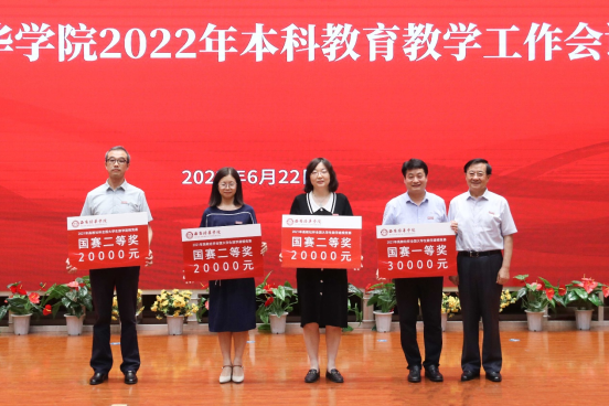 副校长刘越莲宣读表彰文件。校领导分别为2021年度优秀校外实习基地、中国高等教育博览会“校企合作 双百计划”典型案例入选案例、第七届中国国际互联网+大学生创新创业大赛国赛获奖项目指导教师团队、2021年度全国大学生数学建模竞赛国赛获奖项目指导教师及2021年度陕西省一流本科专业建设点所在单位颁发了奖牌和奖金。