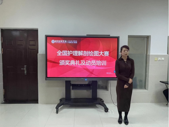 基础医学系于2023年4月11日在至善楼举办了全国护理解剖绘图大赛颁奖及动员大会,对因疫情未能参加主办方颁奖典礼的2022年全国解剖绘图大赛,第六届“金斯瑞杯”中国大学生生物化学歌曲大奖赛,陕西省首届“国希望云解剖”人体解剖学知识竞赛的获奖学生进行了表彰,并对学生进行了2023年解剖绘图大赛赛事解读和动员。出席本次大会的有医学院教学副院长王菊宁副教授、人体解剖学教研室林奇教授、基础医学系主任马怀芬副教授、临床医学系主任李晓明副教授、及基础医学系全体教师。本次颁奖活动由基础医学系副主任侯亚妮主持。