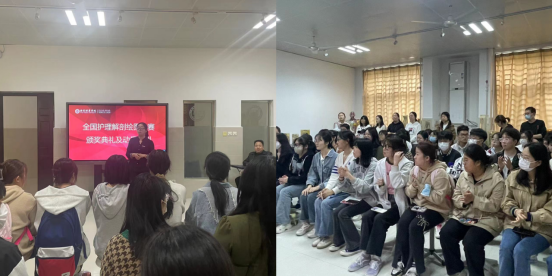 首先,侯副主任依次宣读了2022年全国护理解剖学绘图大赛、第六届“金斯瑞杯”中国大学生生物化学歌曲大奖赛、陕西省首届“国希望云解剖”人体解剖学知识竞赛获奖学生名单,并邀请院领导、系领导及指导教师给获奖生颁发奖状及奖品。