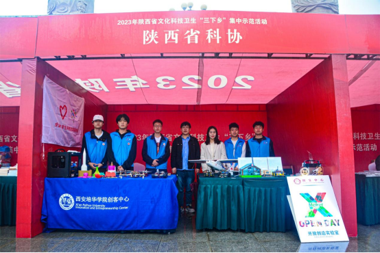 5月6日,由中共陕西省委宣传部、中共商洛市委、商洛市人民政府主办,中共商南县委、商南县人民政府承办的2023年陕西省文化科技卫生“三下乡”集中示范展示活动在商洛市商南县文化广场举行,我校创客中心应邀组织师生团队参加活动并取得良好展示效果。