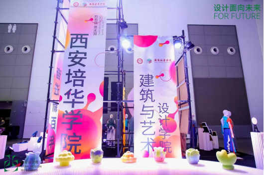 在四大主题展馆中,西安培华学院建筑与艺术设计学院的作品布展于5馆A10展区。展品以服装与服饰设计专业与工艺美术专业设计作品为主,体现了新风尚与传统的碰撞。