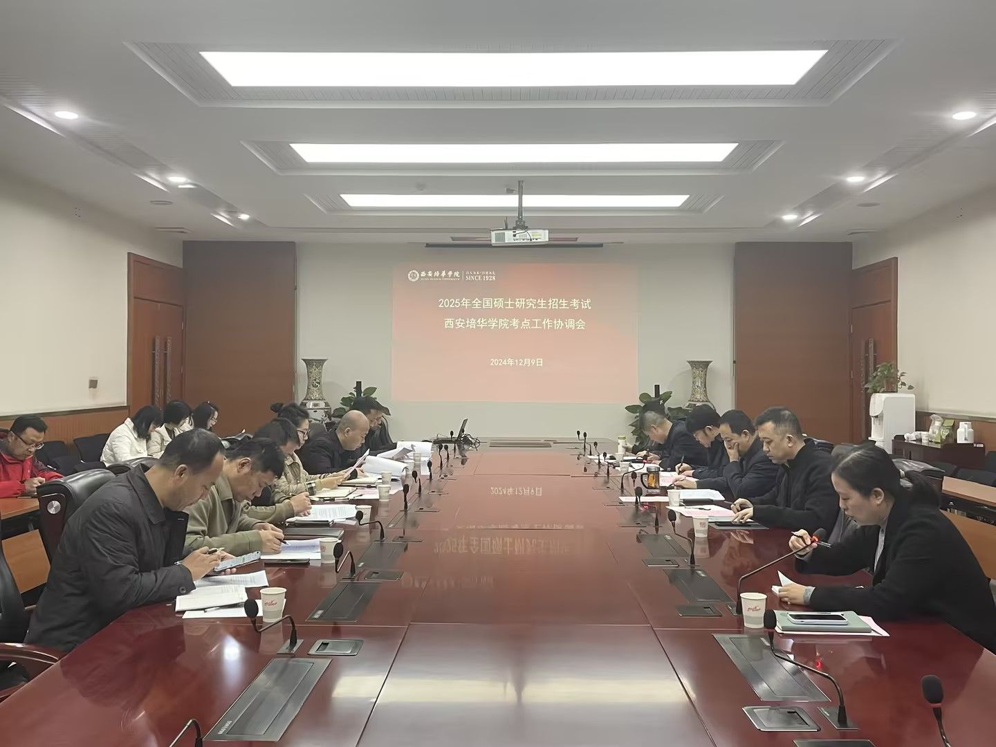 为确保我校2025年全国硕士研究生招生考试组考工作的平稳有序进行,12月9日上午,学校教务管理中心组织召开了 2025年全国硕士研究生招生考试西安培华学院考点工作协调会。学校常务副校长胡俊生、校长助理鲍伟、校长助理姜涛;校长办公室、教务管理中心、党委工作部、党委宣传部(新闻中心)、人力资源中心、信息中心、后勤服务中心(党委保卫部)、培华医院等部门领导参加了会议。会议由校长助理鲍伟主持。