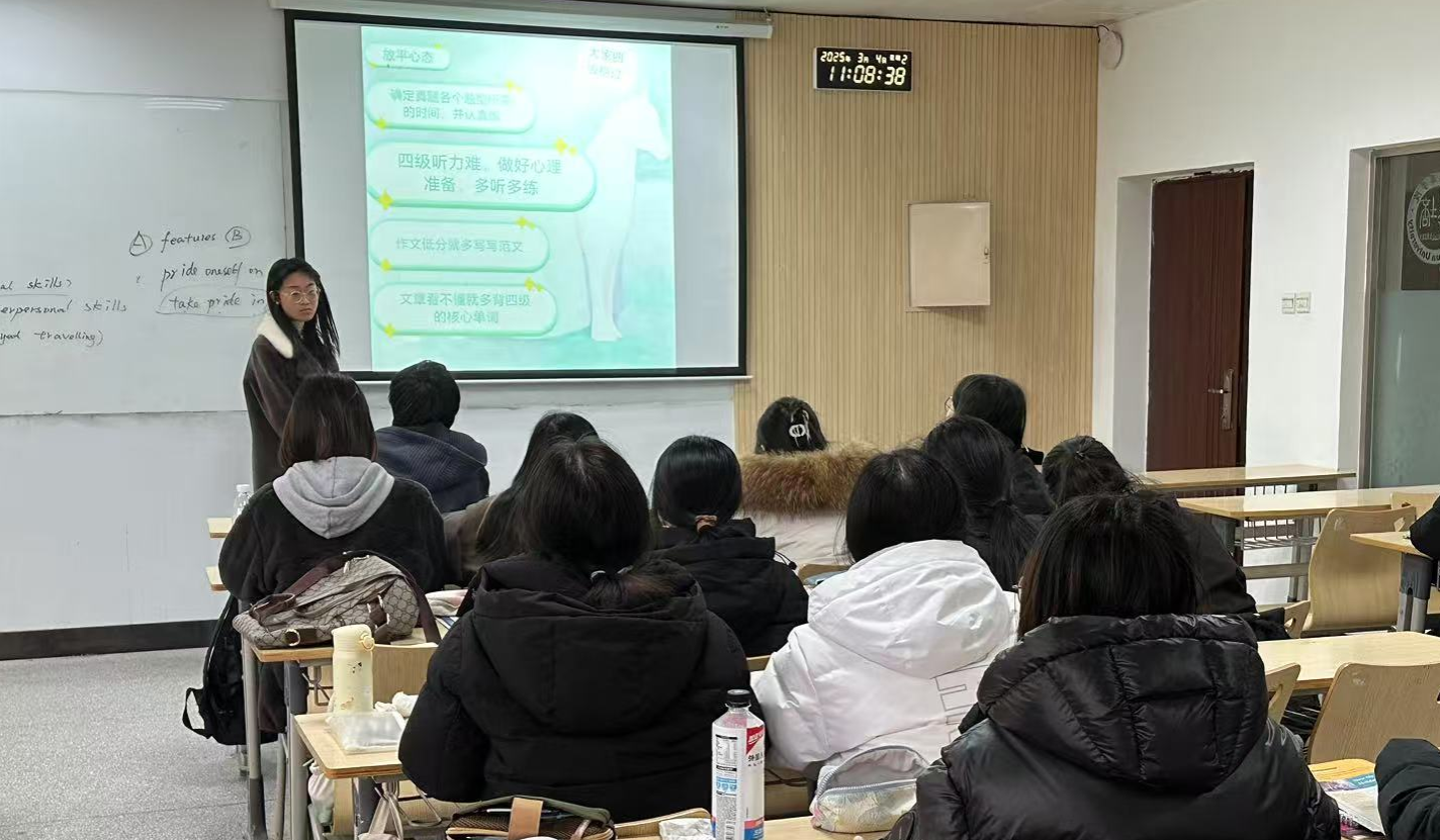 此次四级考试经验分享专题班会的成功举行,不仅为2024级英才班学生提供了宝贵的备考经验,也进一步激发了他们的学习热情,营造了良好的班风学风。展望未来,各学院将继续关注学生的学习和成长,助力学生在四级考试中取得优异成绩,提升英语综合能力。