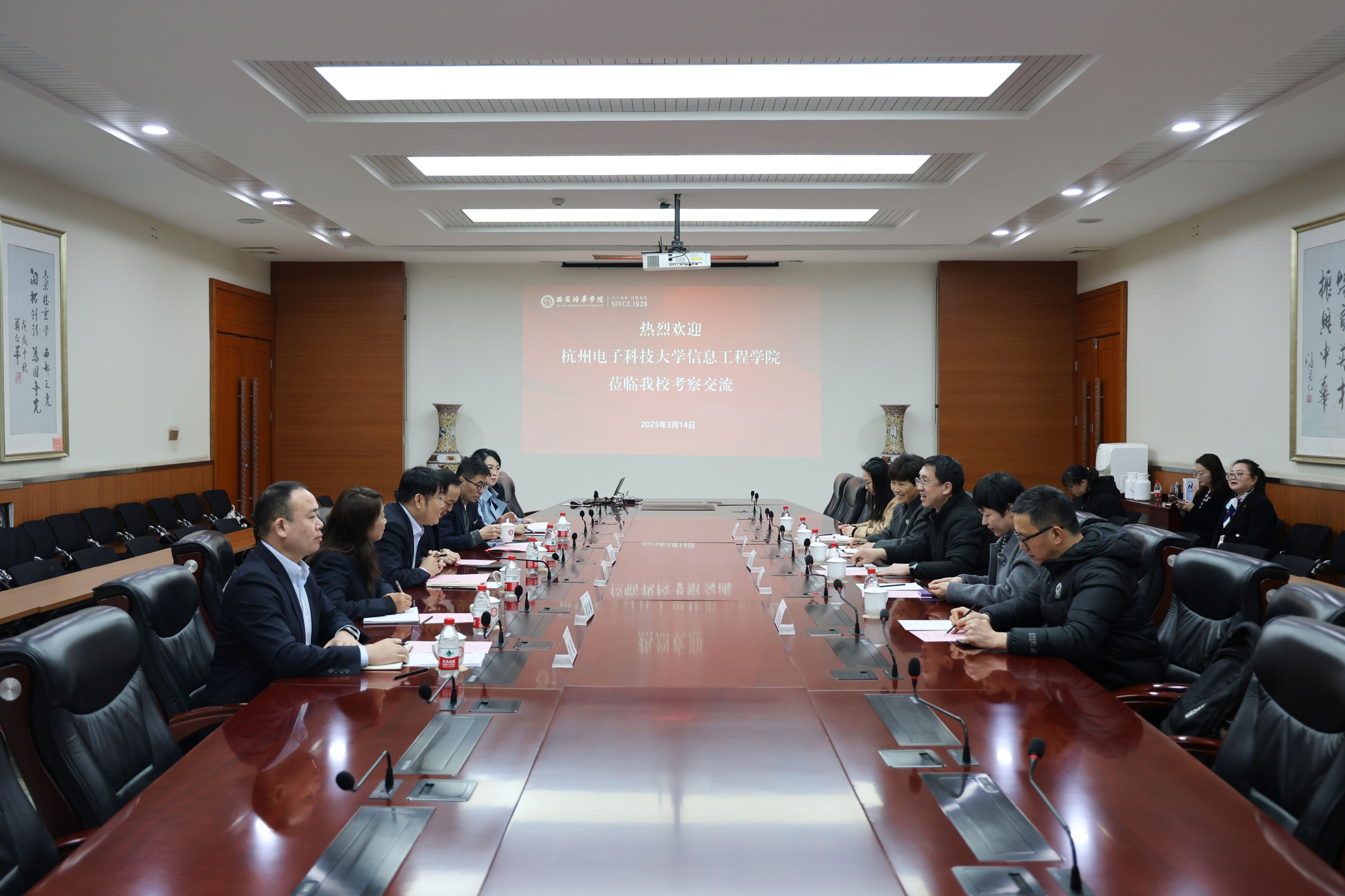 3月14日上午,杭州电子科技大学信息工程学院副院长徐毅鹏一行来校进行考察交流。西安培华学院常务副校长胡俊生,教务管理中心主任铁卫、副主任刘改琳,智能科学与工程学院常务副院长成立,会计与金融学院党委书记、行政副院长刘斌参与座谈会。会议由校长助理鲍伟主持。
