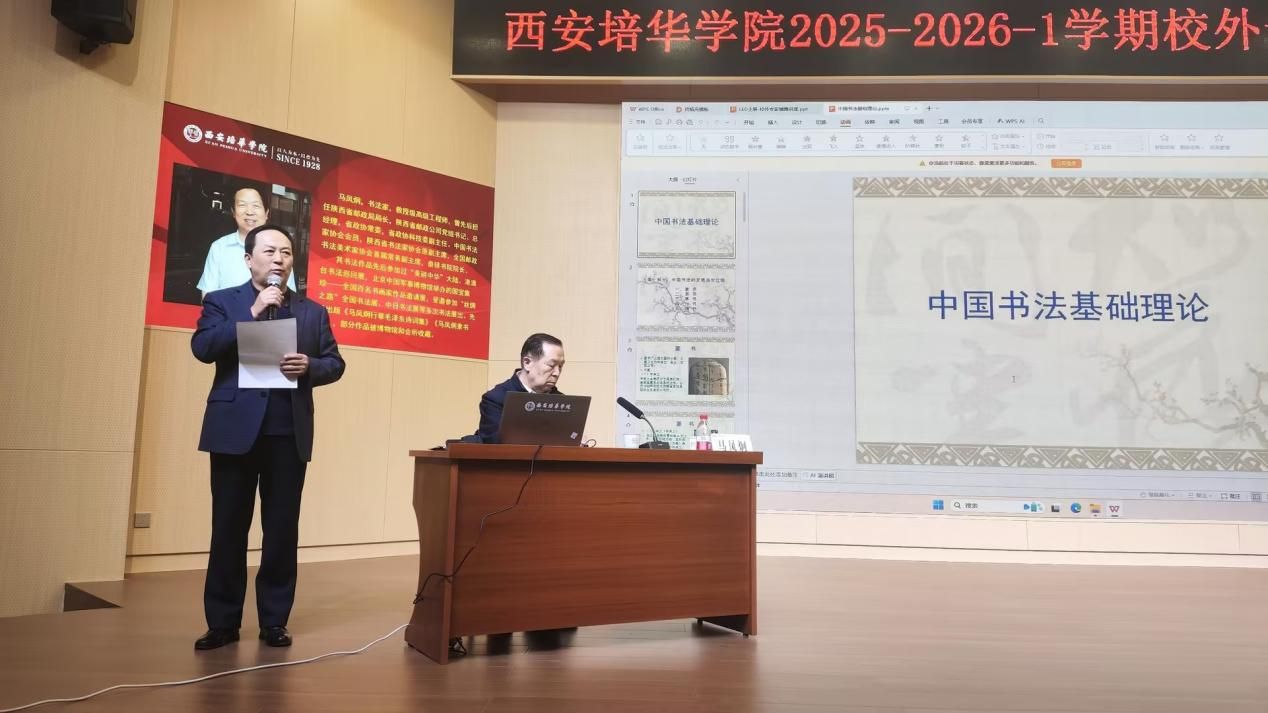 讲座伊始,马教授首先带领与会人员回顾了书法艺术波澜壮阔的发展史。从甲骨文、金文的古朴神秘,到秦篆的规范统一;从汉隶的波磔舒展,到魏晋时期楷、行、草书的高度成熟与个性化表达,讲座清晰地勾勒出汉字书写演变为独立艺术形式的完整轨迹。马教授特别强调了书法不仅是技艺的传承,更是各个时代文化精神与审美风尚的集中体现,让听众深刻地感受到每一笔、每一划背后深厚的历史积淀。