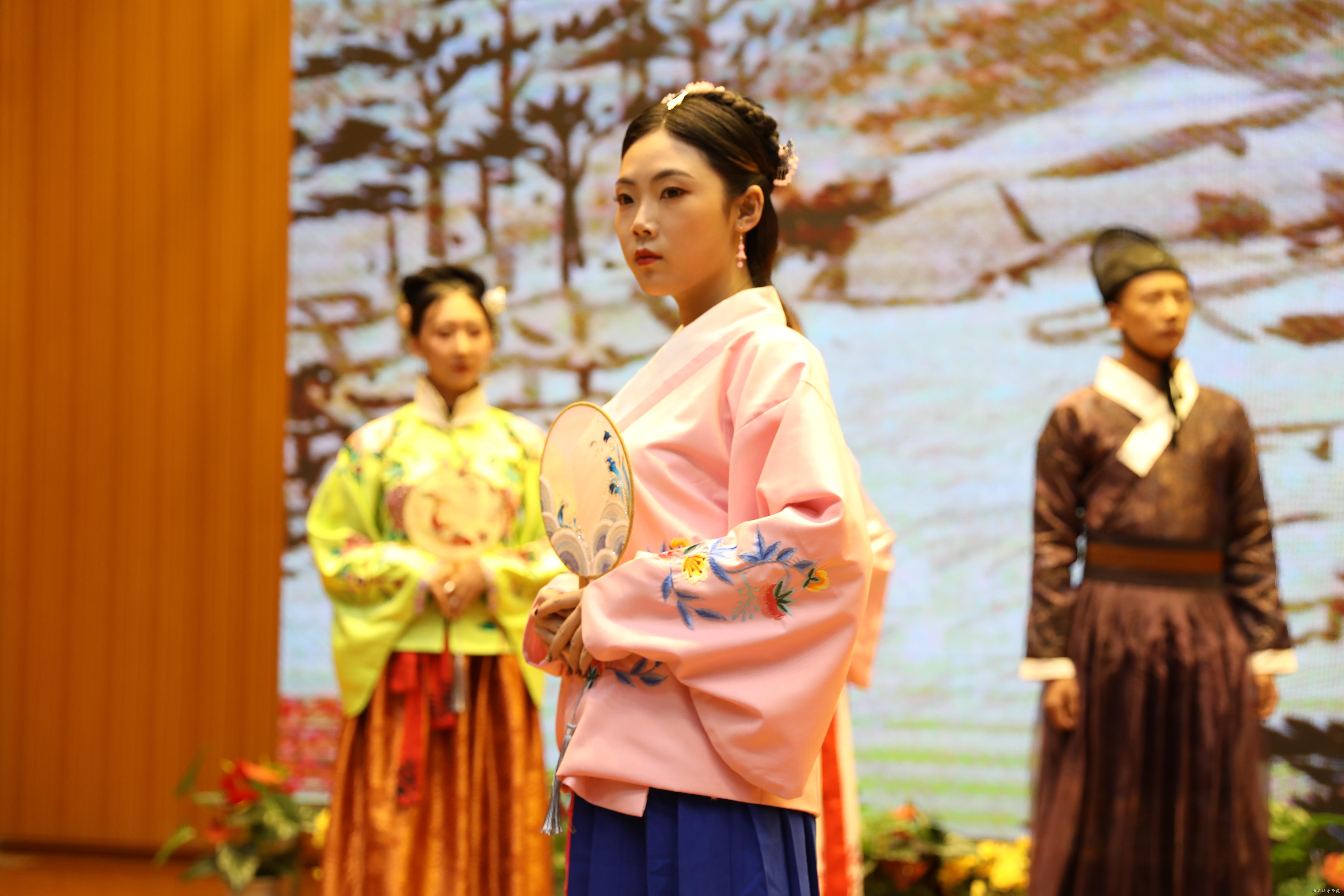 研讨会上还进行了韩国传统服饰及明朝时期服饰的动态展演,精美的花纹、巧妙的设计、别具匠心的配饰,全方位展示出了中韩两国传统服饰精彩之处。