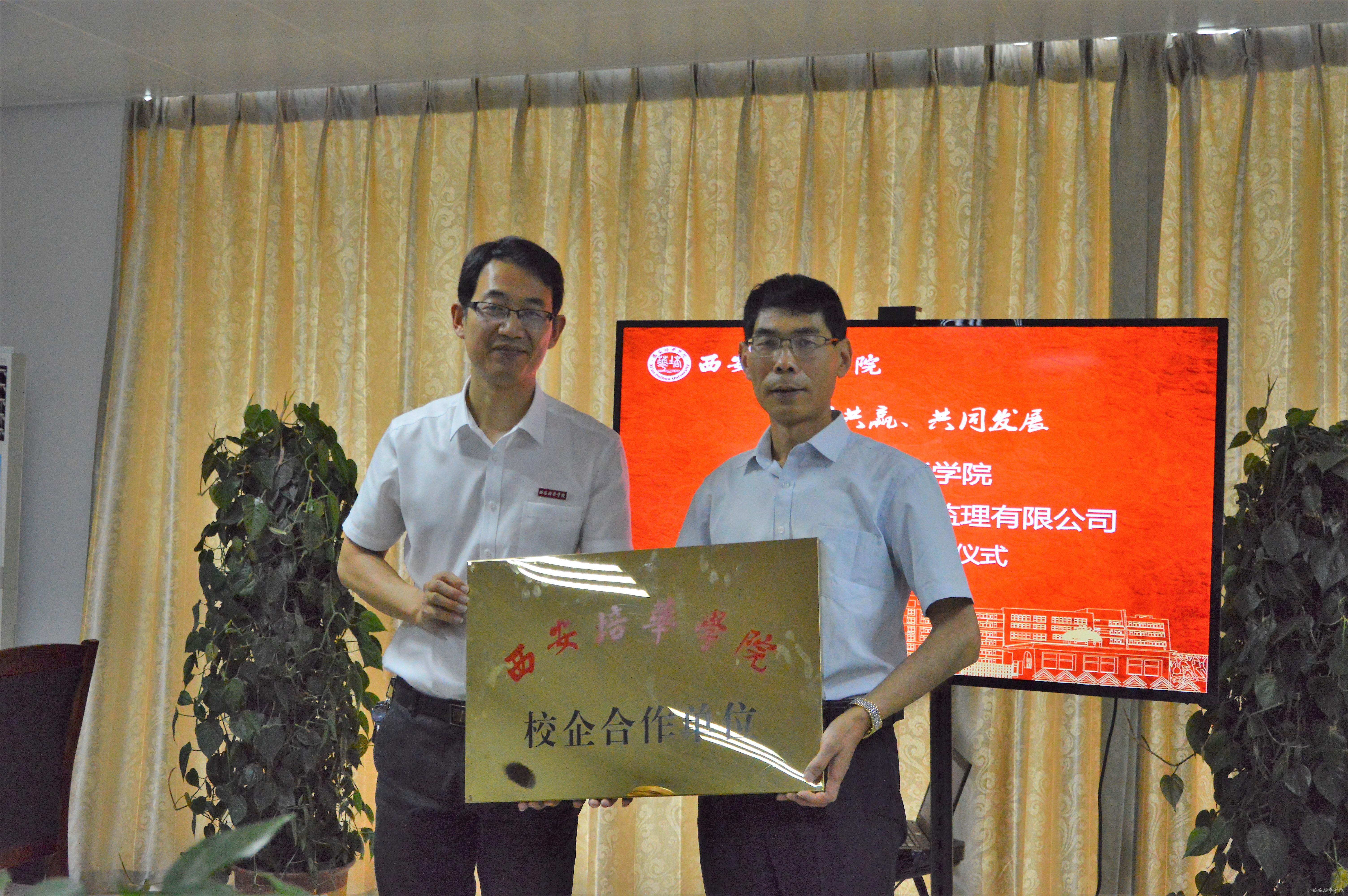 为响应国家关于加强学校和企业合作的号召,充分发挥学校与企业双方优势及高等教育为社会、为企业服务的功能,更好的为社会、为企业培养高素质、高技能的应用型人才,同时也为大学生实习、实训、就业提供更多空间,在双方共同努力下,西安培华学院与陕西泾渭建设监理咨询有限责任公司、西安茂华工程建设监理有限公司校企合作签约及授牌仪式成功举办。