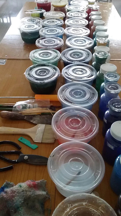 学生在绘制壁画