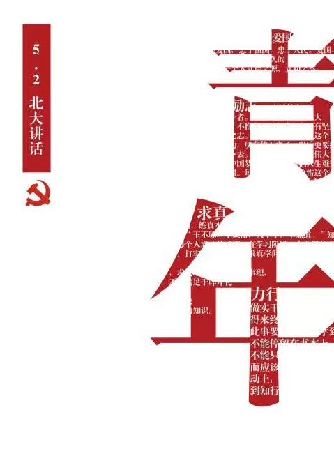 根据习近平总书记在北大师生座谈会中的讲话,对青年提出的四点希望:爱国、励志、求真、力行,将其文字与青年两个字结合,突出这四点是对广大青年提出的。作为青年,我们要把这四点融入生活,实践力行,从根本做起,从小事做起。